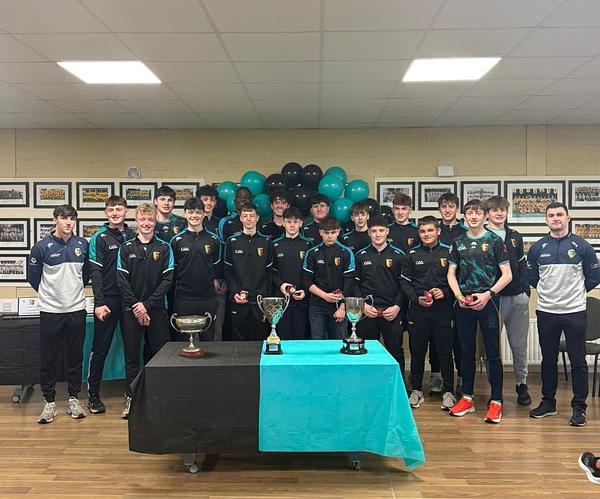 2025 U15 Noamh Eoin: A presentation to our 2025 U15 Noamh Eoin team was held on Saturday evening in Sean Ui Heislin club house to present medals for the 2025 U15 League, Championship and Féile competitions. The boys put in an enormous effort and played some exceptional football over the year and reaped the rewards. Thank you to Michael McTague, Patrick Maguire & Niall Flynn who trained and guided this great bunch of lads and best of luck to them all as they play for the U15 and U17's this year. Thank you to Ryan O'Rourke and Tom Prior who presented the medals on the night and both gave great advise to all the lads. And lastly, thank you to the organisers who put on a great display for the parents and team.